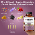 OvaHarmony Balance+ | Herbal Feminine Fertility, PCOD/ PCOS & Cycle Support | Third-Party Tested, Vegan, Non-GMO, Gluten Free | 120 Capsules
